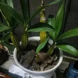 通常选用四壁多孔的塑料或陶瓷花盆,用碳根、泥炭藓、树皮块、木炭块等作盆栽材料。根据兰苗的大小,选择不同规格的花盆,但不宜用大盆栽小苗口上述栽好材料在使用前必需在清水中浸泡1天以上备用。盆底要多垫大瓦片或碎砖块,深度至盆底约1/3处,然后将兰苗放于盆中央,并在一旁插一细竹竿以固定兰苗,再填入其他栽培材料,注意根与根之间用材料隔开。