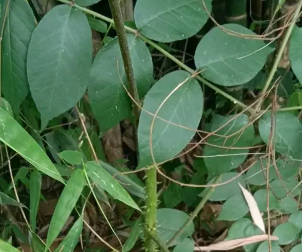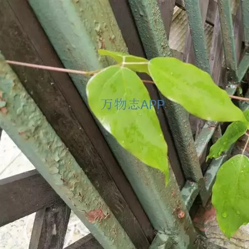 常绿木质藤本,长可达25米。老茎直径超过30厘米,树皮有皱纹,幼茎有纵棱和皮孔。羽状复叶具3小叶,叶长21-39厘米;托叶脱落;叶柄长7-16.5厘米;小叶纸质或革质,顶生小叶椭圆形,长圆形或卵状椭圆形,长8-15厘米,宽3.5-6厘米,先端渐尖头可达15厘米,基部稍楔形,侧生小叶极偏斜,长7-14厘米,无毛;侧脉4-5对,在两面明显,下面凸起;小叶柄长4-8毫米,膨大。