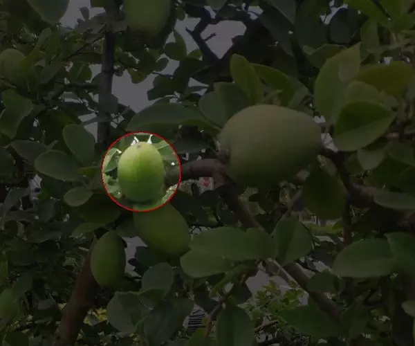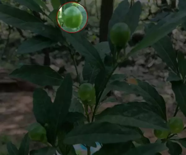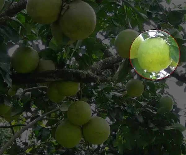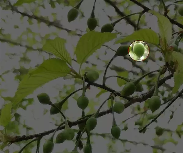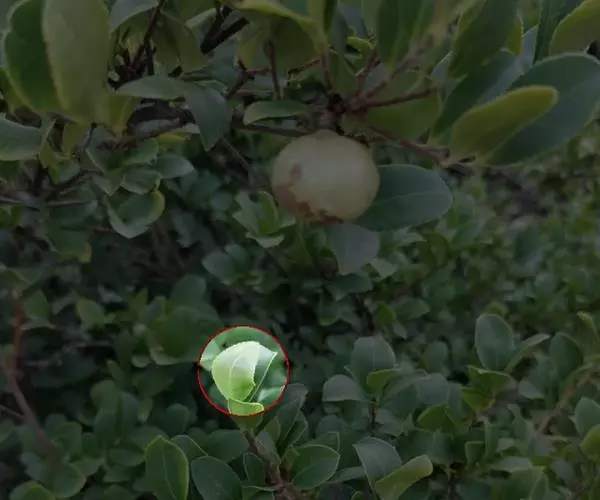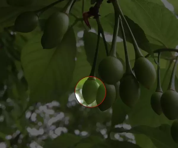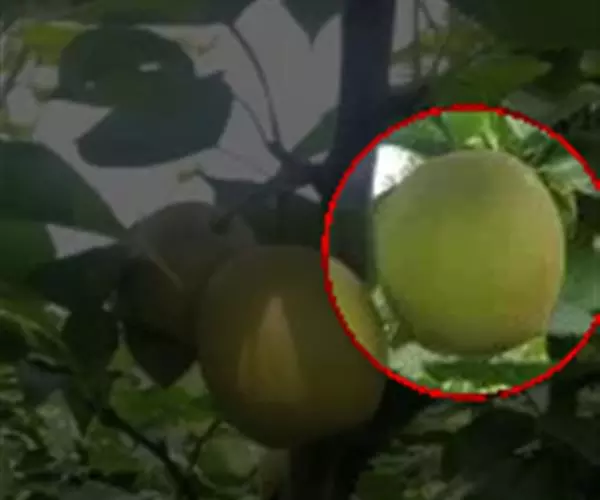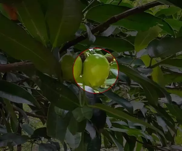 荚果圆形或椭圆形,长5-8cm,宽约5cm,外面有散生硬直的刺,受伤时伤口常有胶汁流出;种子1颗,扁圆形,黑色,直径约1.8cm。花期4-5月;果期6-8月。