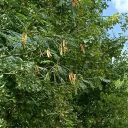 果实于8月下旬成熟,荚果由青色转为黑褐色时便可采收。采下的荚果可置日光下曝晒数日,使之开裂,或摊放于室内,任其晾干后自行开裂,然后取种贮藏。除去果荚即得带有种柄的种子,种柄与种子胶着牢固,不易分离,运输或贮藏时一般都带有种柄。种子需晒干,含水率应在12%以下。种子带柄千粒重约2500g,发芽率95%左右。常温普通干藏,种子发芽力能保持2年。