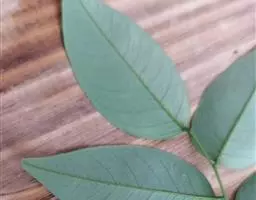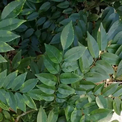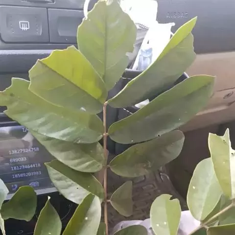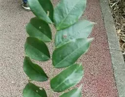 叶长10-20cm,有小叶2-4对;小叶对生,革质,椭圆状长圆形,很少卵形,长5-10cm,宽2.5-5cm,顶端钝急尖或短渐尖,基部钝圆稍不等边,侧脉纤细,多条,不明显,网脉不明显;小叶柄长约5mm。
