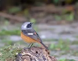 赭红尾鸲:小型鸟类,体长13-16厘米。雄鸟前额、头侧、颈侧、颏至胸概黑色,头顶和背灰色或黑色,…