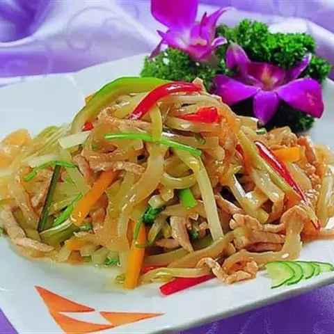 榨菜肉丝是四川省传统的名菜,属于川菜。此菜在四川家庭和中低档饭馆常年制作,原料易得,操作简便,咸淡适口,脆嫩鲜美。