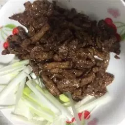 京酱肉丝,是一道知名度很高的菜肴,它是北京菜中的经典代表菜之一。制作时选用猪瘦肉为主料,辅以甜面酱…