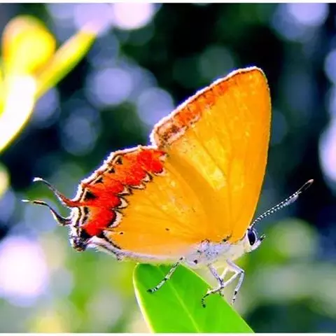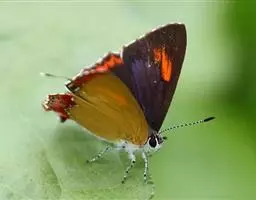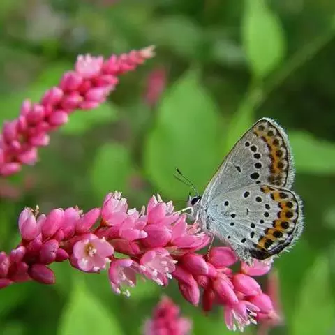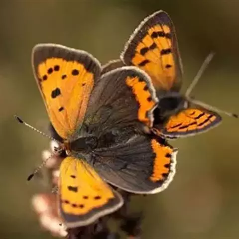橙灰蝶Lycaena dispar Hauorth,鳞翅目、灰蝶科。这类蝴蝶雌雄异型,雄蝶前翅翅面…