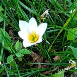 葱莲(学名:Zephyranthes candida (Lindl.)Herb.),又名玉帘、葱兰等,多年生草本植物,鳞茎卵形,直径约2.5厘米,具有明显的颈部,颈长2.5-5厘米。叶狭线形,肥厚,亮绿色,长20-30厘米,宽 2-4毫米。