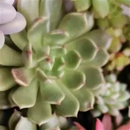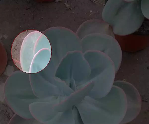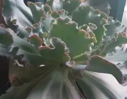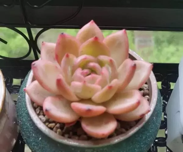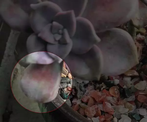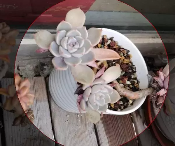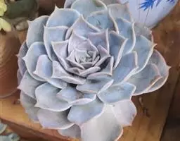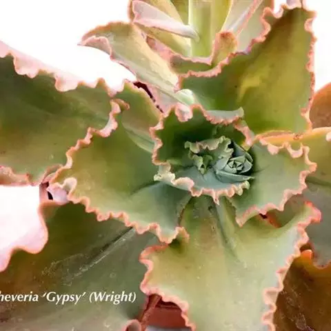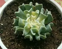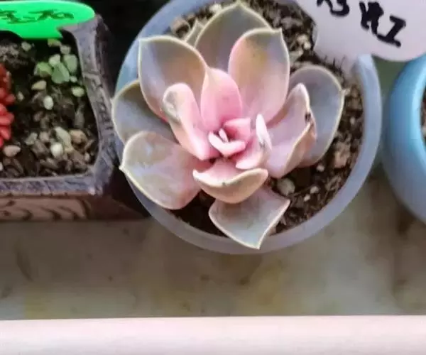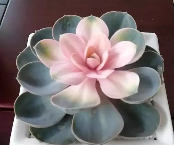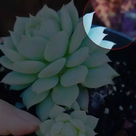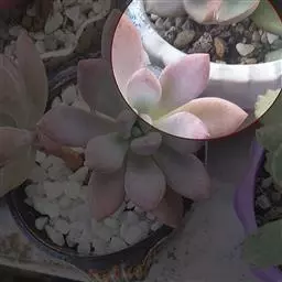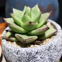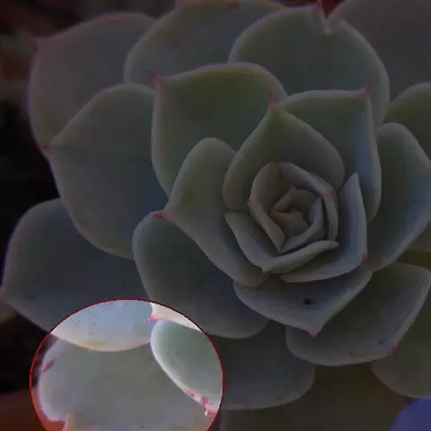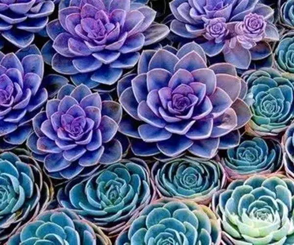 生长时绿色为主,紫色不明显,入秋后日夜温差拉大,叶片呈现美丽的粉紫色,叶缘呈白色。叶片呈莲座形螺旋排列,秋冬季观赏性最佳。放置在阳光下的话,会长成玫瑰花瓣状,使得这个品种具有非常强的观赏性。