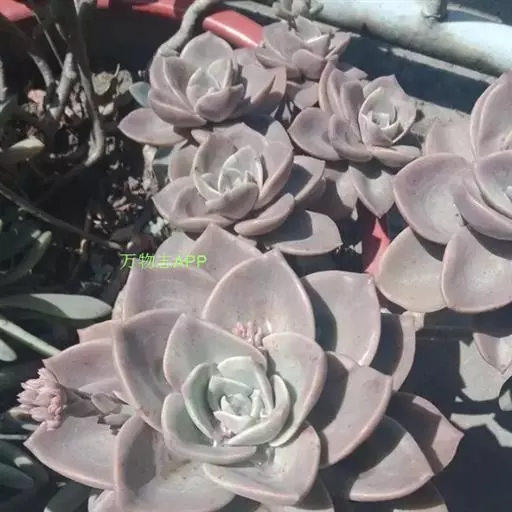 紫珍珠是景天科石莲花属的多年生肉质草本植物。植株中小型;叶片肉质,匙形,呈莲座状紧密排列;叶片粉紫色,…