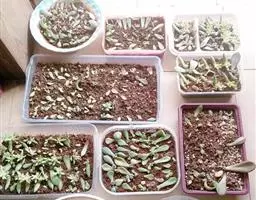 紫珍珠叶片扦插,叶插将完整的成熟叶片平铺在潮润的沙土上,叶面朝上,叶背朝下,不必覆土,放置阴凉处,10天左右从叶片基部可长出小叶丛及新根,将根系埋入土中,往后让紫珍珠小苗多晒太阳,适当浇水、施肥,渐渐地便会长成一棵茁壮的新株。