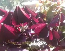 多年生草本,地下块茎粗大。叶丛生,具长柄,掌状复叶,小叶 3枚,无柄,倒三角形,深紫色。紫叶酢浆草…