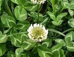 白车轴草,豆科车轴草属的多年生草本植物,茎贴地匍匐;叶柄直立,小叶心形,边缘具细齿,叶脉明显,…