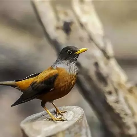灰头鸫:中型鸟类,体长23-27厘米。整个头、颈和上胸褐灰色,两翅和尾黑色,上、下体羽栗棕色。…