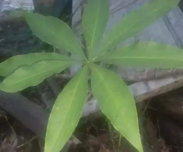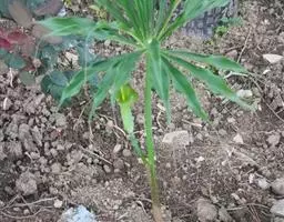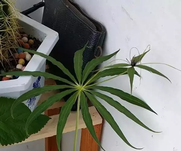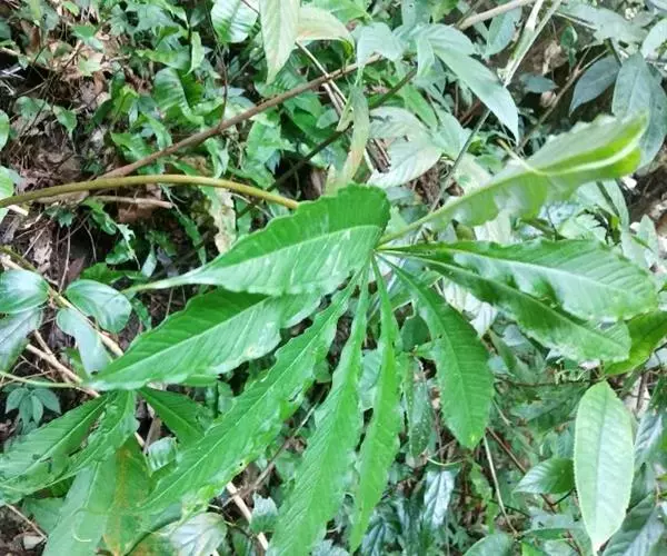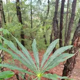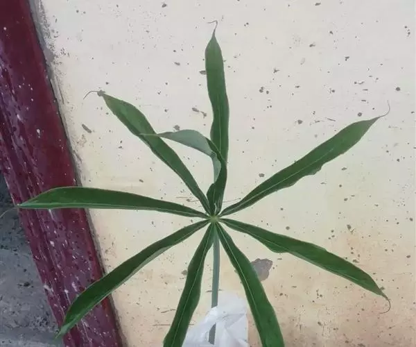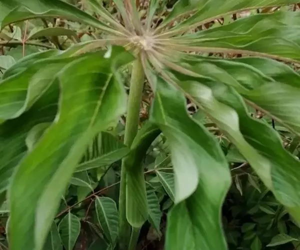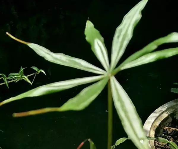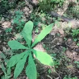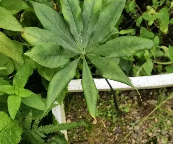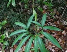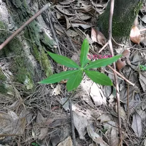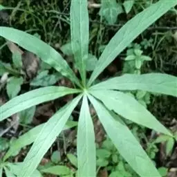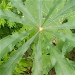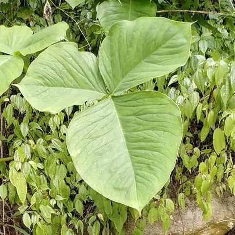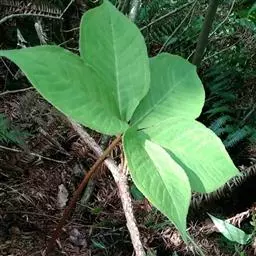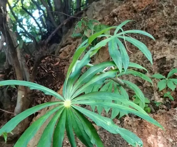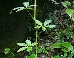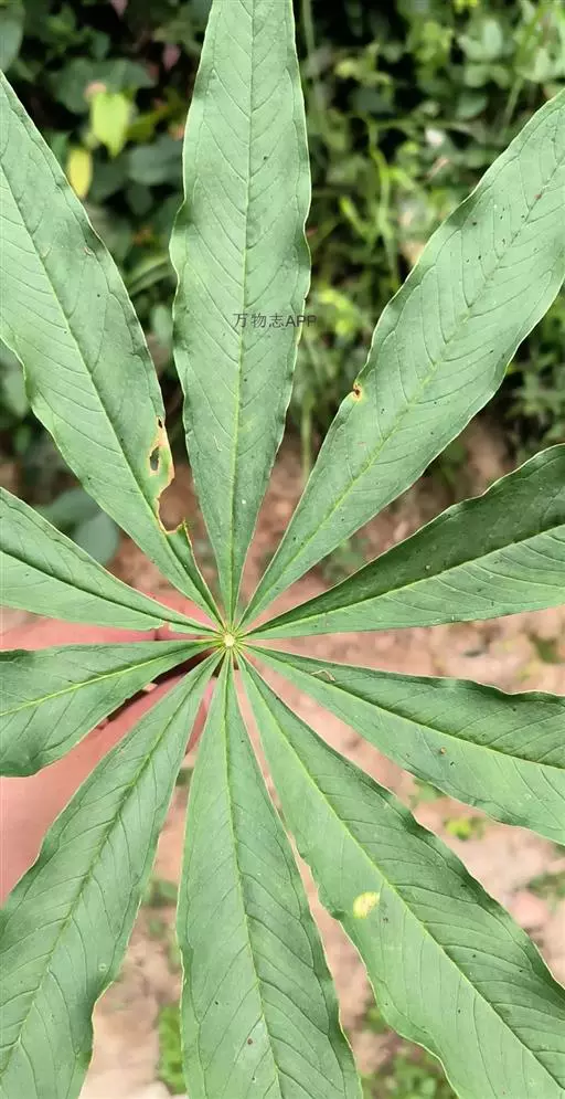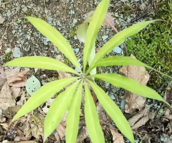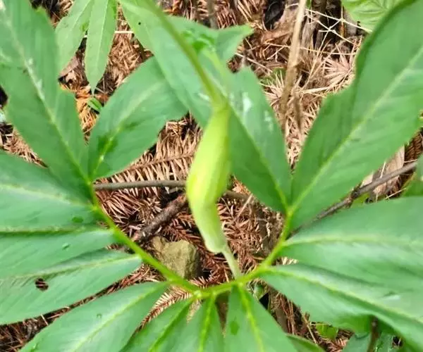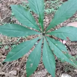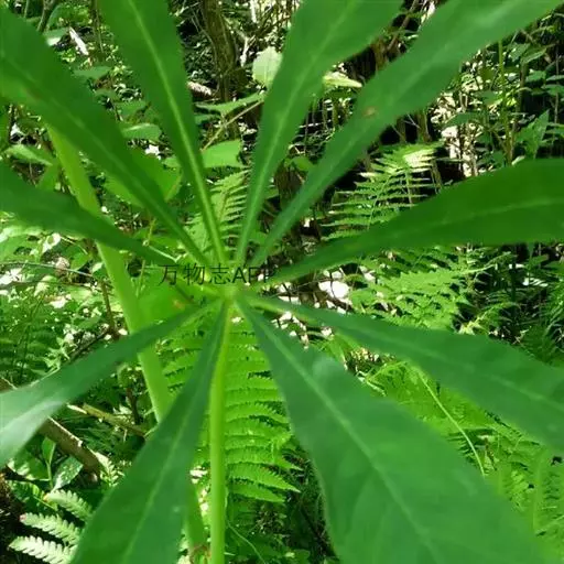 为天南星科天南星属的植物,有毒。多年生草本。块茎略呈球形,直径可达6厘米。叶1枚,小叶7~23枚,呈辐射状排列,形如一把伞,顶端细丝状,叶柄长,长40~80厘米。5~7月开花,雌雄异株,花序的佛焰苞为绿色或淡紫色,有白色条纹,肉穗花序的附属器棒状,顶端钝。浆果多数,成熟时为鲜红色。