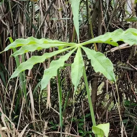 黄苞南星 Schott)是天南星科、天南星属植物,块茎近球形,鳞叶锐尖,叶片鸟足状分裂,…