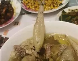 全羊外表金黄油亮,外部肉焦黄发脆,内部肉绵软鲜嫩,羊肉味清香扑鼻,颇为适口,别具一格。