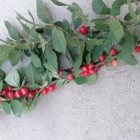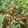 佳红:中国大连农科院用‘滨库’ב香蕉’杂交育成。果实宽心脏形,底色浅黄,阳面着鲜红色霞和较明晰斑点,外观色泽美,有光泽。平均果重9.57克,最大11.19克。果肉浅黄白色,质较脆,肥厚多汁,风味酸甜适口,可溶性固形物含量19.75%,品质最上。核卵圆形,粘核。较耐贮运。果实发育期55天左右。树势强健,生长旺盛,萌芽率较高,成枝力强,定植后3年开始结果,丰产性好,为丰产品种,可用作温室授粉品种。