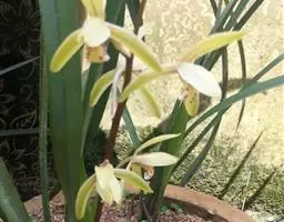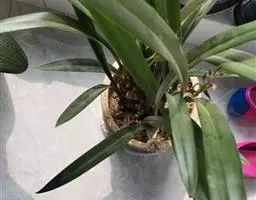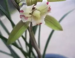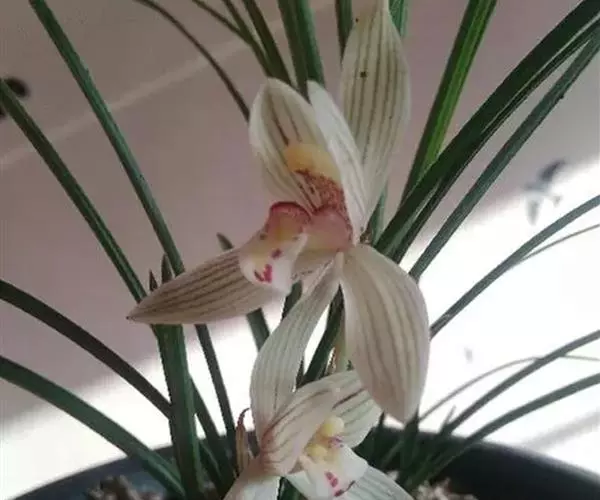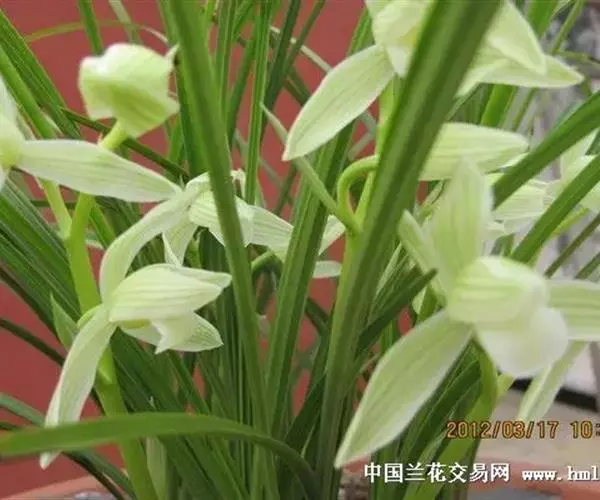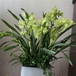 建兰素花,绿白色,清香,一枝开花5至12朵。叶色钢青,细而挺拔,有铮铮铁骨之相,所以叫铁骨素。在日…