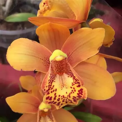 莲瓣兰叶片主脉两侧分别有一条侧脉,侧脉明亮,侧脉边缘呈暗绿色,在侧脉与主脉之间,侧脉与叶缘之间还有两条次侧脉,但用肉眼看不显。莲瓣兰叶片润而光亮。叶片叶质细腻,富弹性,鞘壳紧抱叶脚,株形紧凑。一葶着花2~5朵,幽香,花色鲜丽。