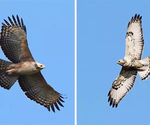普通鵟体色变化较大,有淡色型、棕色型和暗色型3种色型。