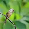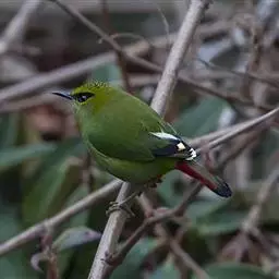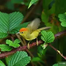 行为 火尾绿鹛(图4) 活动于茂密灌丛,竹林和矮树丛等向阳的地方。单独或结小群活动。与莺类或太阳鸟混群。从杜鹃丛中吸食花蜜。平常无声。联络时发出tsi-tsit高叫。trrrr-trrr-trrr之前有高声尖叫。示警时重复tzip声。 [3-4]