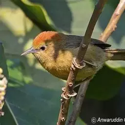红头穗鹛是雀形目画眉科伪穗鹛属鸟类。成鸟额至头顶或至枕部为棕红色;额基和眼先淡灰黄色;眼圈隐隐泛黄白色;颊和耳羽灰黄色缀有橄榄褐色;其余上体连同翼和尾的表面为橄榄绿褐色;飞羽和尾羽暗褐色,外缘沾茶黄色;下体颏、喉和胸浅灰黄色,具细黑羽干纹;腹和尾下覆羽橄榄褐绿色;腋羽和翼下覆羽淡灰黄色;虹膜棕红色;上喙角褐色,下喙暗黄色;脚黄褐色。红头穗鹛分布于亚洲东南部地区;在中国分布于秦岭及以南的广大地区,包括长江流域、华南、华中和西南地区。栖息于山地森林中。常单独或成对活动,有时也结小群或与棕颈钩嘴鹛等其他鸟类混群,在林下灌丛间来回跳跃穿梭。主食鞘翅目、鳞翅目、直翅目、膜翅目、双翅目和半翅目等昆虫,偶食少量植物种实。繁殖期在4-7月,营巢于茂密灌草丛或竹丛中。窝卵数4-5枚,卵白色且具棕斑,雏鸟晚成;雌雄亲鸟轮流孵卵,共同育雏。红头穗鹛为食虫益鸟,被列入中国林业局2000年8月1日发布的《国家保护的