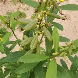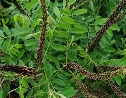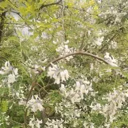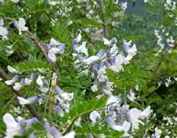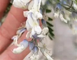 总状花序生于当年生枝的枝梢,同一枝上的花几同时开放,下部枝的叶先开展,花序长30-90厘米,径5-7厘米,自下而上顺序开花;花序轴密生白色短毛;苞片披针形,早落,花长1.5-2厘米;花梗细,长1.5-2.5厘米;花萼杯状,长4-5毫米,宽5-6毫米,与花梗同被密绢毛,上方2萼齿甚钝,圆头,下方3齿锐尖,最下1齿甚长,长达3毫米;花冠紫色至蓝紫色,旗瓣圆形,先端圆,基部略作心形,翼瓣狭长圆形,基部截平,具小尖角,龙骨瓣较阔,近镰形,先端圆钝;子房线形,密被绒毛,花柱上弯,无毛,胚珠8粒。荚果倒披针形,长12-19厘米,宽1.5-2厘米,平坦,密被绒毛,有种子3-6粒;种子紫褐色,具光泽,圆形,径1-1.4厘米。花期4月下旬至5月中旬,果期5-7月,荚果宿存枝端。