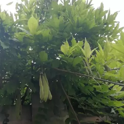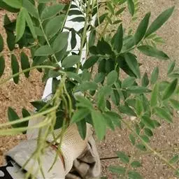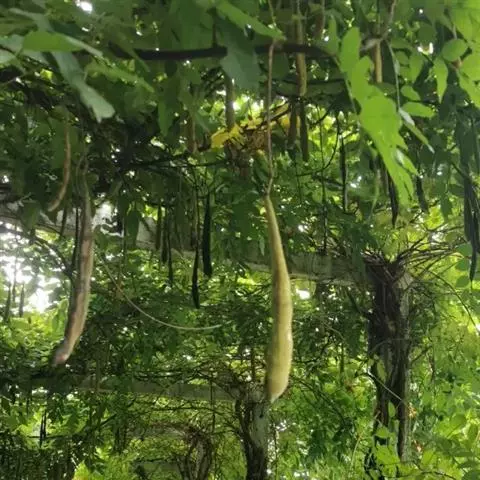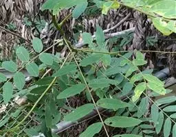 落叶藤本;树皮赤褐色。茎右旋,枝较细柔,分枝密,叶茂盛,初时密被褐色短柔毛,后秃净。羽状复叶长20-30厘米;托叶线形,早落;小叶5-9对,薄纸质,卵状披针形,自下而上等大或逐渐狭短,长4-8厘米,宽1-2.5厘米,先端渐尖,基部钝或歪斜,嫩时两面被平伏毛,后渐秃净;小叶柄长3-4毫米,干后变黑色,被柔毛;小托叶刺毛状,长约3毫米,易脱落。