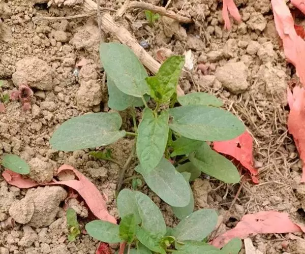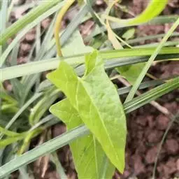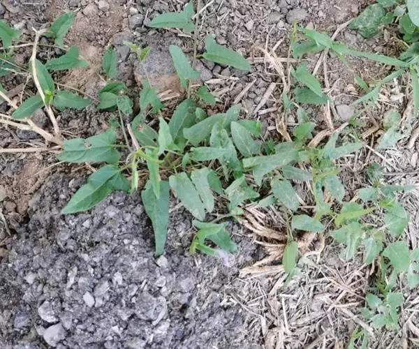 一年生草本, 全体不被毛,植株通常矮小,常自基部分枝,具细长白色的根。茎细,平卧,有细棱。基部叶片长圆形,顶端圆,基部戟形,上部叶片3裂,中裂片长圆形或长圆状披针形,侧裂片近三角形,叶片基部心形或戟形。
