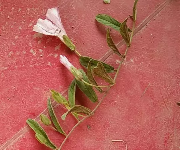 花腋生,花梗长于叶柄,苞片宽卵形;萼片长圆形,顶端钝,具小短尖头,内萼片稍短;花冠淡紫色或淡红色,钟状,冠檐近截形或微裂;雄蕊近等长,花丝基部扩大,贴生花冠管基部,被小鳞毛;子房无毛,柱头2裂,裂片长圆形,扁平。