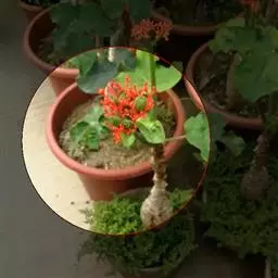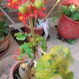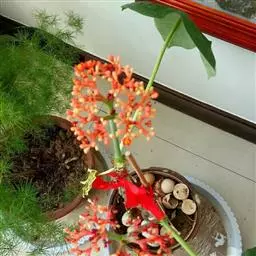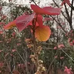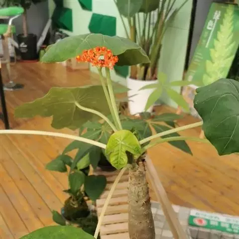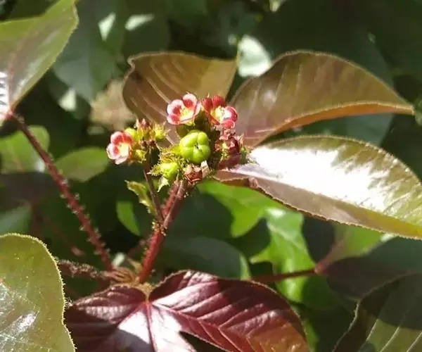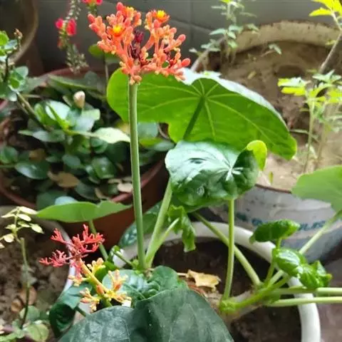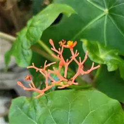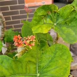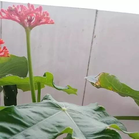 棉叶珊瑚花 (拉丁学名:Jatropha gossypiifolia Linn.)别名:红叶麻风树、棉叶麻风树、棉叶膏桐、棉叶木花生。为双子叶植物纲、大戟科、麻疯树属多年生落叶灌木或小乔木,株高2~6米。树皮光滑,苍白色;具乳汁,无毛。全株有毒。