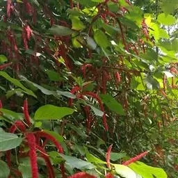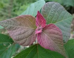 花红色,雄花花瓣长约4毫米,雌花花瓣长约6~7毫米。聚伞花序,腋生;花总梗长,被毛,中部以上分枝。雄花萼长2~3毫米,裂片5枚,近圆形,无毛;雌花萼同;雄花瓣5枚,匙形;雌花同;花单性,雌雄同株;花期7~12月。开花时往往雄花多,雌花少。