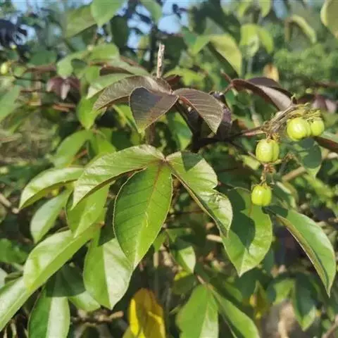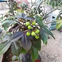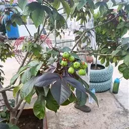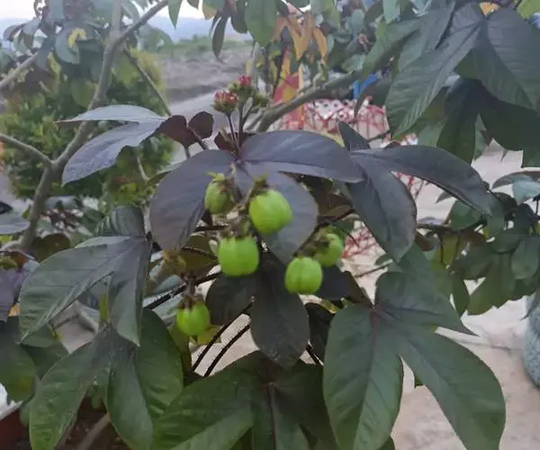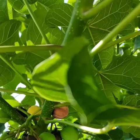 蒴果近球形,径约2.5cm,嫩果绿色,成熟时裂成3个2瓣裂的分果爿,成熟种子为黑色。
