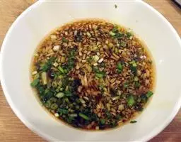 配汤:清汤类:调煮汤中加入盐、白糖、酱油、香辛料、姜、葱等,煮制1小时至1.5小时,过滤待用;红油类:将菜籽油烧制220℃至230℃,倒入生姜粒、豆瓣酱和泡红椒煸炒至油色红亮后关火,加入糖等调味料,搅拌均匀,冷却待用。
