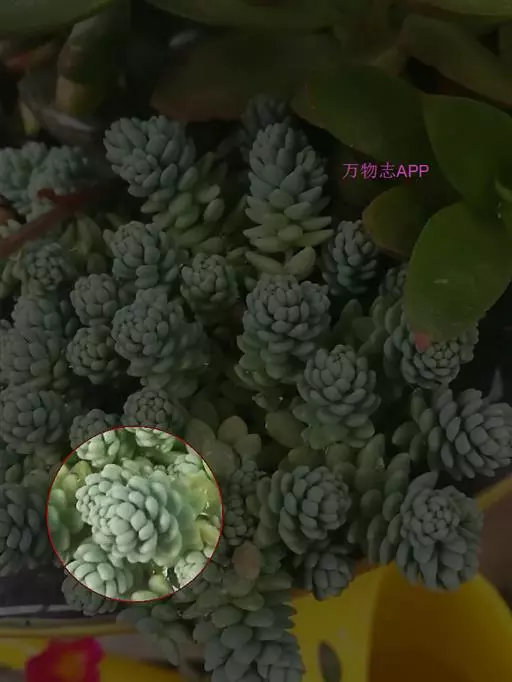 薄雪万年草别名矶小松,景天科景天属多年生草本植物,其细小的蓝绿色棒状叶片环绕生长于茎端,…