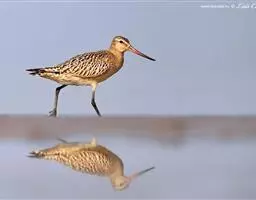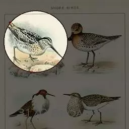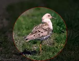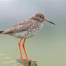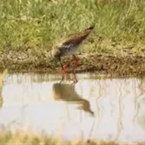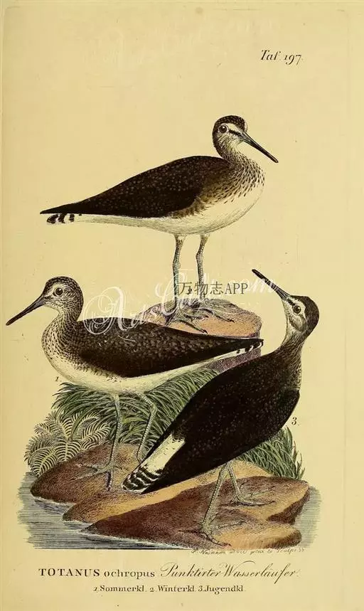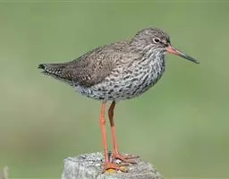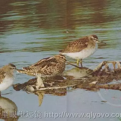 红脚鹬:体长28厘米,上体褐灰,下体白色,胸具褐色纵纹。飞行时腰部白色明显,次级飞羽具明显白色外缘。…