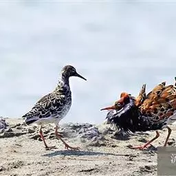 翻石鹬:体重82-135克,体长180-240毫米。体型高矮兼称,看起来十分的滑稽。…