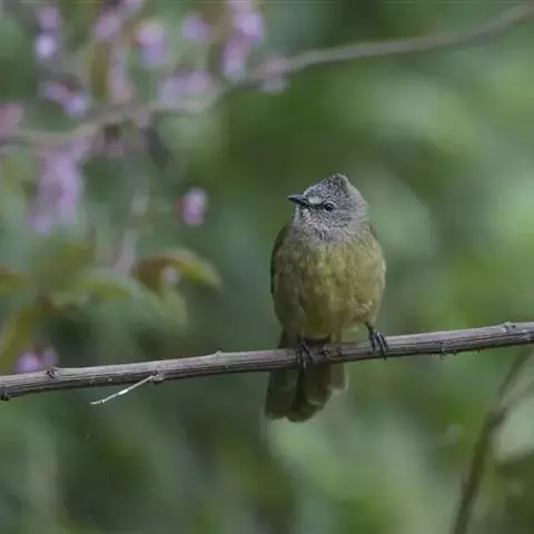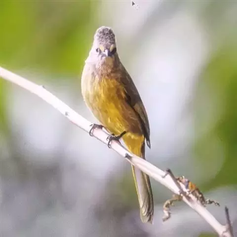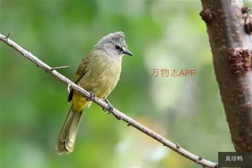黄绿鹎,小型鸟类,体长19-22厘米。额至头顶暗褐具灰色羽缘,眼先黑色,…