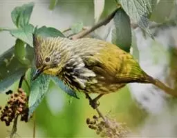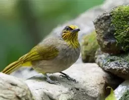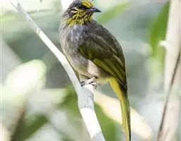 纹喉鹎:体长19厘米,是一种中等体型的偏绿色鹎。特征为头顶、脸颊、颏及喉均具黄色条纹。上体橄榄绿色。…