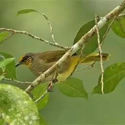 黄绿鹎(学名:Pycnonotus flavescens),小型鸟类,体长19-22厘米。额至头顶暗褐具灰色羽缘,眼先黑色,其上面有一粗著的白纹从鼻后至眼,在黑色的头部极为醒目。上体橄榄绿褐色。颏、喉淡灰色或灰白色,胸灰褐色具橄榄黄色羽缘,尾下覆羽鲜黄色。明显与其他鹎不同,野外不难鉴别。