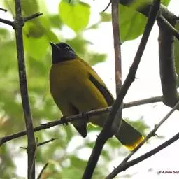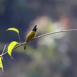 黑冠黄鹎:体长18-21厘米,是一种中等体型偏黄色鹎。整个头、颈、颏、喉黑色,头顶有显著直立的羽冠,…