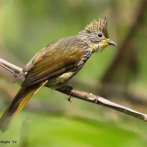 纵纹绿鹎,是鹎科鹎属的一种动物,是体型中等大小鸟类,体长20-24厘米。头绿褐色具明显的冠羽,…