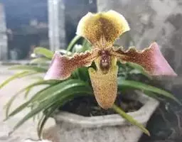 虎斑兜兰兰科,兜兰属地生或半附生植物。叶基生;数枚至多枚,叶片带形、革质。花葶从叶丛中长出,花苞片…