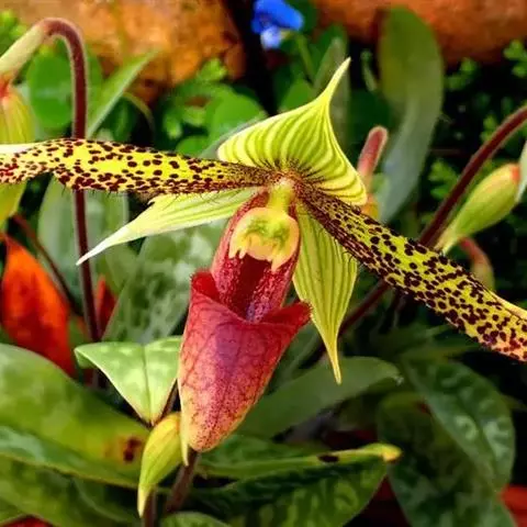 兜兰又名拖鞋兰,夏秋或临冬开花,花期 彩云兜兰 最长达70余天。西南地区的兜兰叶片通常要厚实硬朗些,花色更为亮丽显眼,有更好的抗旱保水机制,在抗逆性新品种选育上具有非常高的利用价值。