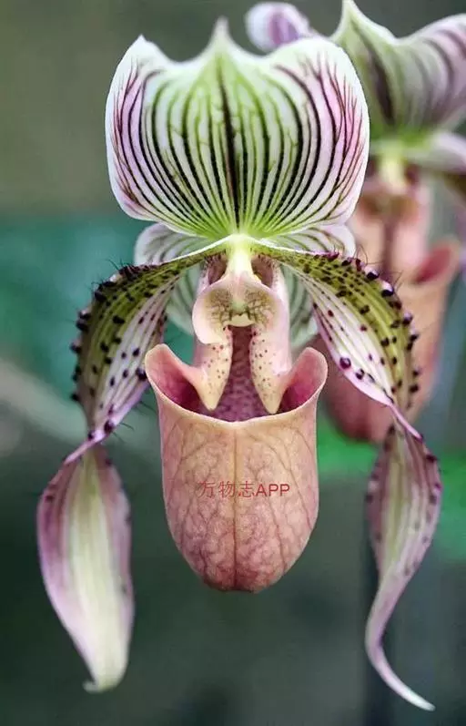 飘带兜兰 Stein)是兰科兜兰属的附生植物,叶基生,叶片宽带形,厚革质,无毛;花葶近直立,绿色,…