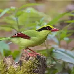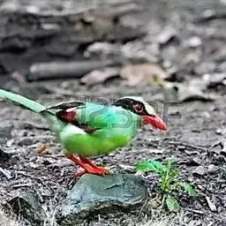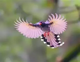 蓝绿鹊:中型鸟类,共有5个亚种。体长36-38厘米。尾长,嘴、脚红色。通体羽色主要为草绿色,…