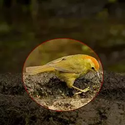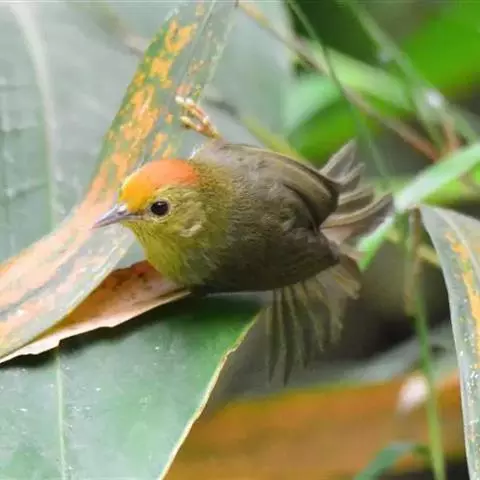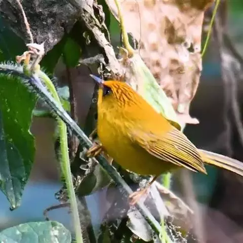 金头穗鹛小型鸟类,体长10~11厘米,是一种黄色小鸟。头顶金黄色有黑色纵纹,眼先黑色,…