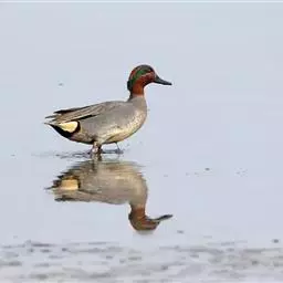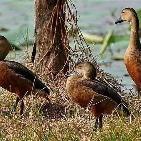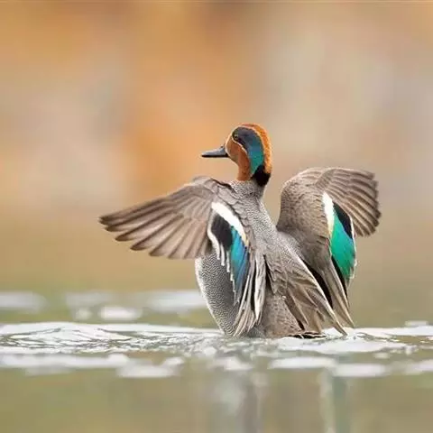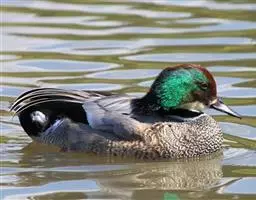 绿翅鸭是小型鸭类,体长37厘米,体重约0.5千克。嘴脚均为黑色。雄鸟头至颈部深栗色,…