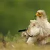 一般情况下,雌性胡兀鹫会生下两枚卵。第二只雏鸟会在第一只破壳一周之后出壳,并且要比第一只雏鸟小很多。这只小雏鸟实际上只是大雏鸟出现意外时的替补。在食物紧缺的情况下,小雏鸟有时会成为大雏鸟的充饥之物。