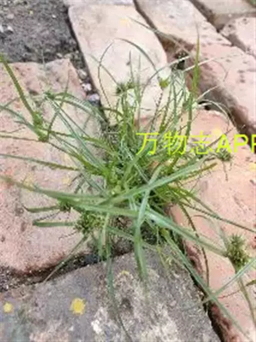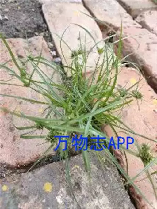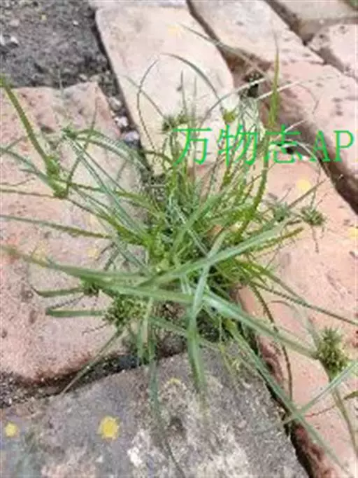 莎草科。一年生草本。秆密丛生,细弱,扁三棱形。平滑,基部具少数叶。叶短于秆。叶鞘紫褐色或棕红色。叶状总苞2~3片,复出长侧枝聚伞花序紧密。鳞片浅绿色。幼苗第一片真叶线状披针形,叶片横剖面呈三角状,叶片无明显叶脉,叶鞘膜质,无脉。第2片真叶具有3条明显直出平行脉和有2个大气腔。幼苗全株光滑无毛。分布于草坪 。