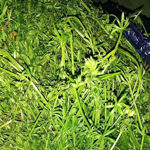 六叶葎 Ehrend. & Schönb.-Tem. ex R. R. Mill)是茜草科拉拉藤属的一年生草本。常直立,有时披散状,高10-60厘米左右,近基部分枝,有红色丝状的根;茎直立,具疏短毛或无毛;叶片薄,纸质或膜质,长圆状倒卵形、倒披针形、卵形或椭圆形顶端钝圆而具凸尖;聚伞花序顶生和生于上部叶腋,苞片常成对披针形,花冠白色或黄绿色,裂片卵形,雄蕊伸出;果近球形,单生或双生,密被钩毛;花期4-8月;果期5-9月。六叶葎分布于中国北、山西、陕西、甘肃、江苏、安徽、浙江、江西、河南、湖北等地,印度、巴基斯坦、尼泊尔、锡金、不丹、缅甸、日本、朝鲜、俄罗斯均有栽培。生于海拔920-3800米的山坡、沟边、河滩、草地的草丛或灌丛中及林下。六叶葎味甘,性平,具有清热解毒、利尿消肿的功效,可用于治疗尿路感染、赤白带下、痢疾、痛肿、跌打